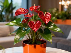 آنتوریوم در گلدان فلزی